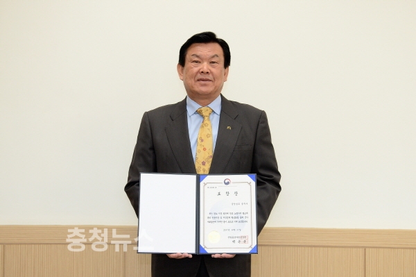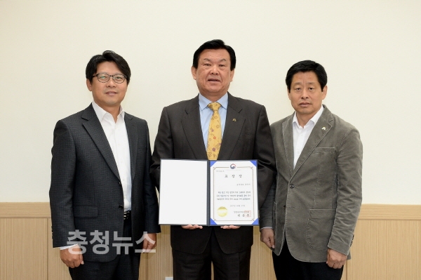 공주시, 전통시장 활성화 기여 산업부장관상을 오시덕 공주시장 수상 모습