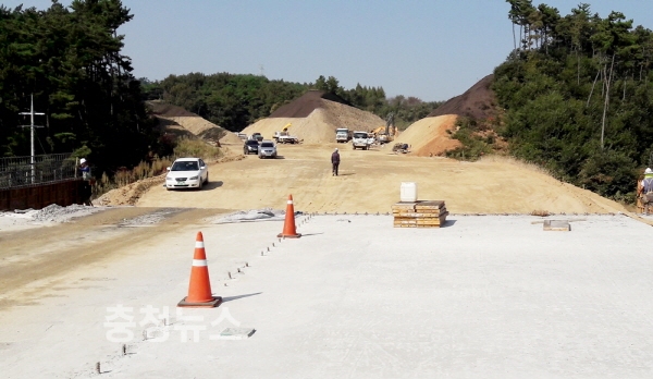 간선도로(국도32호선)에 연결되는 접속 도로(길이 3.1㎞)가 윤곽을 드러냈고 배수시설 등 주요 구조물도 속속 제모습을 갖춰가고 있다.