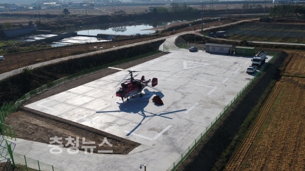 홍성군이 산불진화 헬리콥터 계류장을 새롭게 조성해 산불피해에 신속하게 대처할 수 있게 됐다.