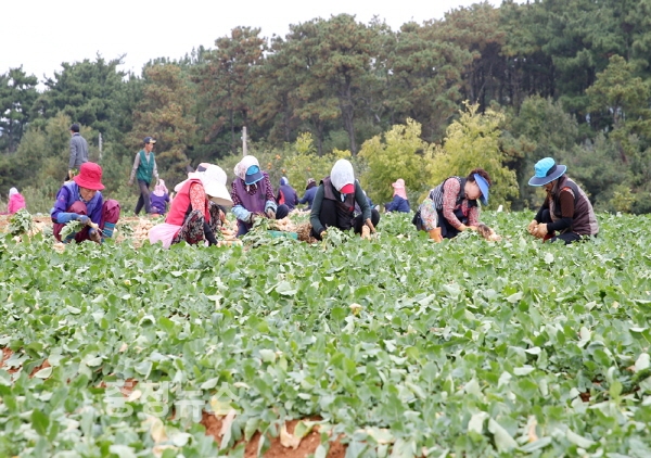 서산시에 따르면 고북면 가구리를 비롯해 초록리, 사기리, 정자리, 기포리 등의 지역의 80여개 농가들은 160ha에 심은 총각무를 수확하느라 바쁜 손놀림을 보이고 있다.