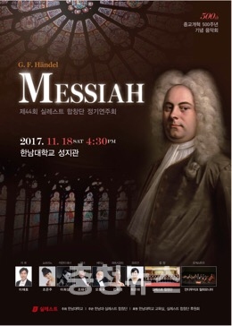 한남대학교(총장 이덕훈)는 오는 18일 오후 4시 30분 교내 성지관에서 종교개혁 500주년 기념 ‘메시아’ 연주회를 개최한다.