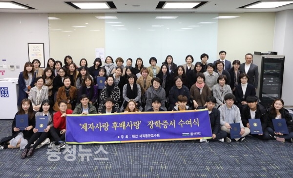 김종희 행정·대외부총장 등 상명대학교에 재직 중인 동문교수 30여 명이 어려운 환경에서도 학업에 정진하는 재학생 31명에게 1500만 원의 장학금을 지급했다.