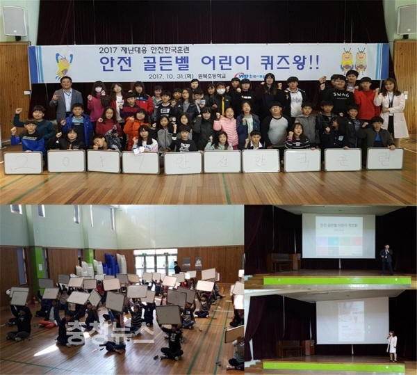 ‘안전 골든벨 어린이 퀴즈왕’ 선발대회는 원북초등학교 4,5,6학년을 대상으로 심폐소생술 교육과 재난안전, 생활안전 등 안전관련 퀴즈대회를 통해 안전에 대한 어린이들의 관심과 경각심을 일깨우고, 어린이들의 생활속 안전문화 의식 확산을 도모했다.