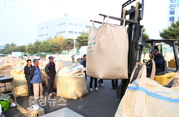 지난해 11월 진잠동 대정창고의 공공비축 미곡매입 현장 모습