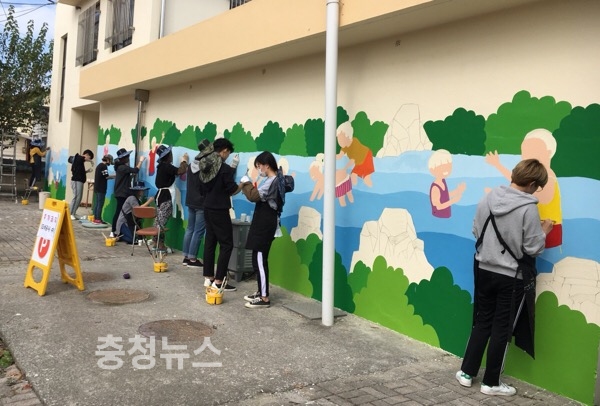 한국영상대학교(총장 유재원)는 최근 이 대학 게임애니메이션과 학생들이 세종시 장군면 소재 ‘작은 목욕탕’ 환경 개선을 위한 담장 벽화 봉사를 실시했다고 3일 밝혔다.