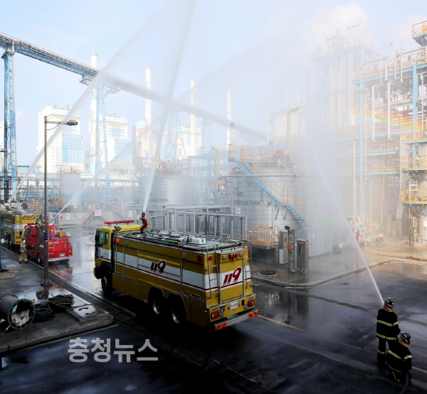 2일에는 원북면 인근 해상에 규모 6.5의 지진이 발생했다는 가상 상황을 설정, 원북면 태안발전본부 IGCC발전처에서 태안군을 비롯해 태안소방서 등 16개 기관·단체 관계자 257명이 참여한 가운데 인명구조와 화재진화, 후속조치 등 실전을 방불케 하는 현장훈련을 펼치며 굵은 땀방울을 흘렸다.