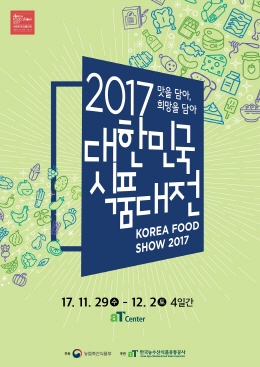 농림축산식품부(장관 김영록)와 aT 한국농수산식품유통공사(사장 여인홍, 이하 aT)는 대한민국 대표 식품박람회로 자리 잡고 있는 ‘2017 대한민국 식품대전(Korea Food Show, KFS)’의 개최 소식을 알렸다.