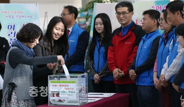 이날 행사는 ‘어려운 이웃에게 사랑을 전달해주세요’라는 캐치프레이즈로 한현택 구청장을 비롯한 구청 직원이 솔선수범해 어려운 이웃에게 온정의 손길을 베푸는 “복지동구”의 참된 모습을 실천하고자 마련됐다.