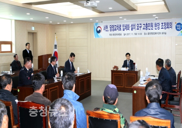 국민권익위는 수차례의 현장조사와 관계기관 협의를 거쳐 7일 서천군청 회의실에서 주민과 대전지방국토관리청, 서천군청, 서천경찰서 등 관계기관이 참석한 가운데 김인수 부위원장겸 사무처장 주재로 현장조정회의를 열고 중재안을 최종 확정했다.