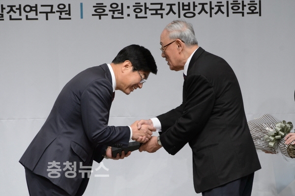 한편,‘대한민국 자치발전 대상’은 지방자치 실시 22주년을 맞아 지역발전에 이바지하고 독창적인 행정을 통해 지역발전과 혁신에 모범이 될 만한 성과를 보여준 인사를 격려하고자 올해 처음 만들어졌다.
