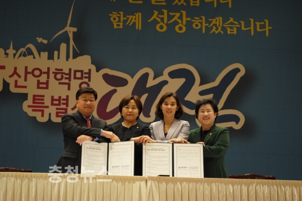 이날 시는 4차 산업혁명의 실질적인 추동력을 확보하기 위해 국회 4차산업혁명포럼(공동대표 송희경·박경미·신용현 국회의원)과 미래 성장 동력 발굴 및 4차 산업혁명특별시 대전 육성을 위해 업무협약도 즉석에서 체결했다.