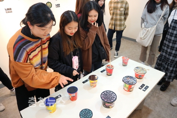 이번 전시는 텍스타일디자인학과 23명, 산업디자인학과 27명이 참여하였으며 두 학과의 뚜렷한 개성들이 조화를 이루어 컵라면 뚜껑 관련 소품을 독창적으로 만들어내어 전시했다. 이 작품들은 학생들의 기발한 아이디어와 뜨거운 열정이 반영되었으며 현지 관람객들에게도 강렬한 인상을 주며 높은 평가를 얻었다.
