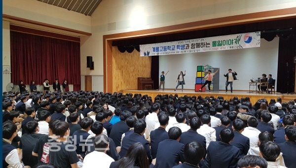 민주평화통일자문회의 계룡시협의회(회장 이지웅)는 10일 오후 계룡고등학교(교장 박상식) 강당에서 계룡고 학생 450여명을 대상으로 “계룡고등학교 학생과 함께하는 통일이야기”를 개최했다.