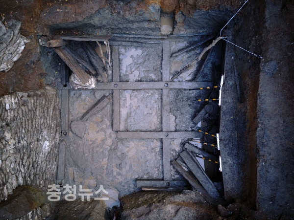 이번 발굴조사에서 주목되고 있는 것은 축조 연대가 백제시대로 밝혀진 목곽고다. 평면 방형의 형태로 구성된 목곽고의 크기는 가로 550cm, 세로 545cm, 깊이 약 180cm로 조사됐으며, 바닥에 목재를 격자 형태로 결구해 3×3칸의 규모로 조성됐다.