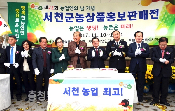 서천군(군수 노박래)은 지난 10일부터 11일까지 2일간 서천특화시장 광장에서 지역을 대표하는 농ㆍ특산물, 가공 식품 등 농업관련 융ㆍ복합 산업 결과물을 한자리에 모은 ‘2017년 서천군 농상품 홍보ㆍ판매전’을 열어 농업인과 소비자가 하나되는 화합의 시간을 가졌다.