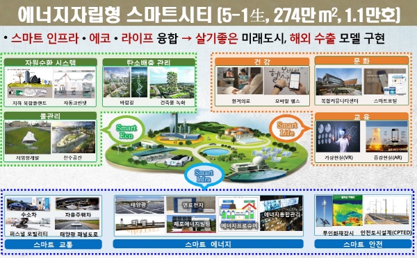 친환경 에너지 혜택을 통해 누구나 편리한 삶을 누릴 수 있는 미래도시 구현을 목표로 건설될 계획이다.