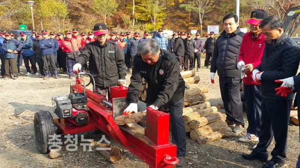 충남 부여군(군수 이용우)이 14일 외산면 만수산 자연휴양림 주차장에서 임업관련 기관단체 임직원, 임업인 등 130여명이 참여한 가운데 사랑의 땔감 나눔 운동에 본격 나섰다.