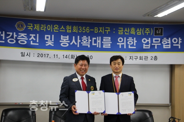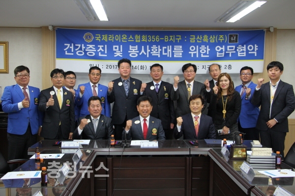 국제라이온스협회 356-B지구 (총재 김동원)는 14일 지구회관 2층에서 금산흑삼 주식회사(대표 고태훈)와 상호협력 및 공동봉사를 주요 내용으로 하는 업무협약을 체결했다.