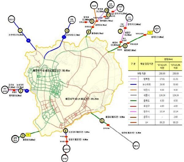 행정중심복합도시건설청(청장 이원재)은 동절기 대비 행정중심복합도시권 도로 총 288.69㎞에 대한 제설대책 수립을 완료하고 이달 15일부터 내년 3월 15일까지 제설대책반을 운영한다고 밝혔다.