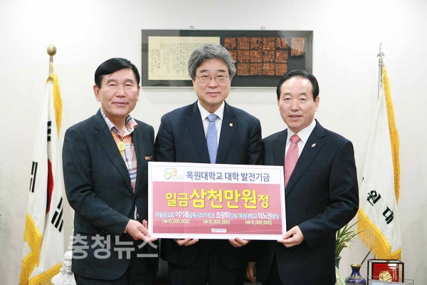 이번 3인의 발전기금 기탁은 목원대 발전자문위원인 이기복 감독과 조광휘 대표가 기탁 의사를 밝히자 박노권 총장이 동참 뜻을 밝혀 이뤄지게 됐다.