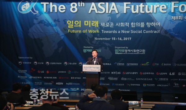 김홍장 당진시장이 16일 대한상공회의소 국제회의장에서 열린 제8회 아시아미래포럼에 참석해 당진형 청년정책을 알렸다.