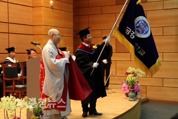 금강대학교 제6대 이준원 총장의 취임식이 16일 오전 원각도서관 1층 소강당에서 열렸다.