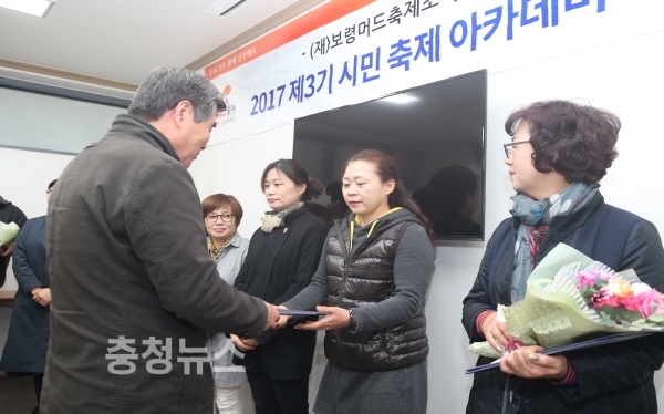 재단법인 보령머드축제조직위원회는 지난 16일 오후 머드박물관에서 김동일 이사장과 교육 수료생, 자원봉사자, 축제 관계자 등 40여 명이 참석한 가운데 제3기 머드축제 아카데미 수료식을 가졌다.
