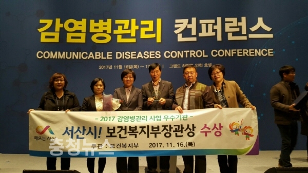 충남 서산시 보건소는 지난 16일 인천 그랜드 하얏트 호텔에서 열린 ‘감염병관리 컨퍼런스’에서 보건복지부 장관상을 받았다고 밝혔다.
