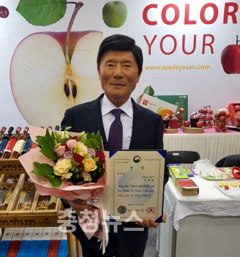 충남 당진시 석문면에서 31년 째 사과를 재배해 오고 있는 베테랑 농업인 인필환 씨(77세)가  17일 일산 킨텍스에서 열린 2017 대한민국 과일산업대전 대표과일 선발대회에서 최우수상을 수상했다.