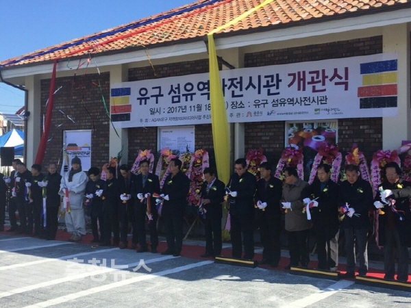 이날 오시덕 시장은 축사를 통해 추진위원장 등 성공적으로 사업이 추진될 수 있도록 힘쓴 관계자들을 격려하고 유구 섬유산업의 부흥을 알리는 AGAIN유구 지역창의아이디어사업의 준공을 축하 했다.