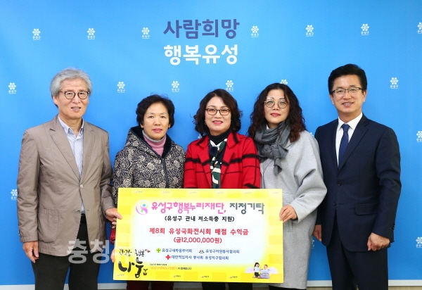 이날 전달된 성금은 지난 10월 ‘제8회 국화전시회’ 기간 중 이들 3단체가 매점운영을 통해 번 수익금 일부로 유성구행복누리재단에 지정 기탁돼 저소득층 지원에 쓰일 예정이다.