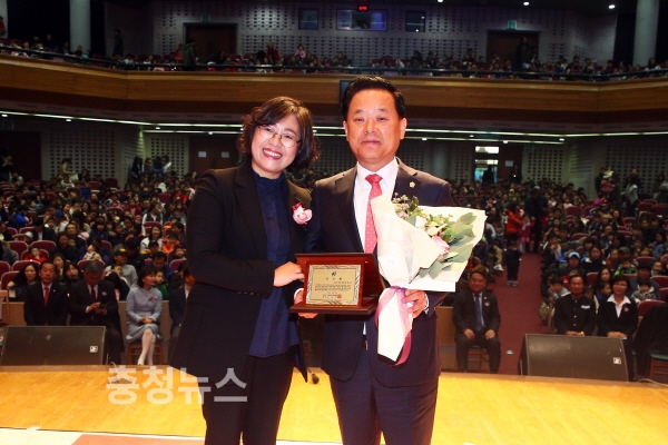 이날 대전 침례신학대학 대강당에서 열린 ‘유성가족 행복나들이’행사에서 가정어린이집연합회 고은미 회장은 “우리 영유아들이 건강하고 바르게 성장하고 보육인들이 사명감과 자긍심을 가지고 일할 수 있는 환경을 만들기 위해 노력해 주셨기에 이 패를 드린다”며 감사패를 전달했다.