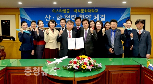 백석문화대학교(총장 장종현)는 21일, 교내 자유관 2층 회의실에서 이스타항공과 상호교류 협력 협약식을 개최했다.