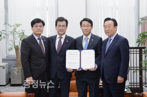이 시장은 이날 김관용 경북도지사 및 이시종 충북도지사와 함께 2018년 광역 SOC와 예산편성과 관련, 중부권정책협의회에서 마련한 공동건의문을 조정식 국토위원장과 백재현 예결위원장에게 전달하고 예산 반영을 건의했다.
