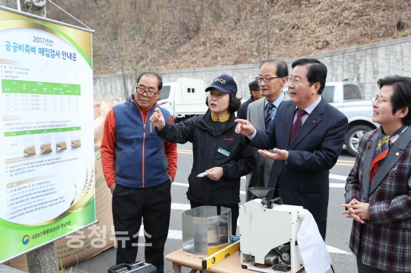 장종태 서구청장은 매입현장을 방문해 수매등급과정을 점검하고, 한 해 동안 땀 흘려 고생한 농업인들을 격려했다.