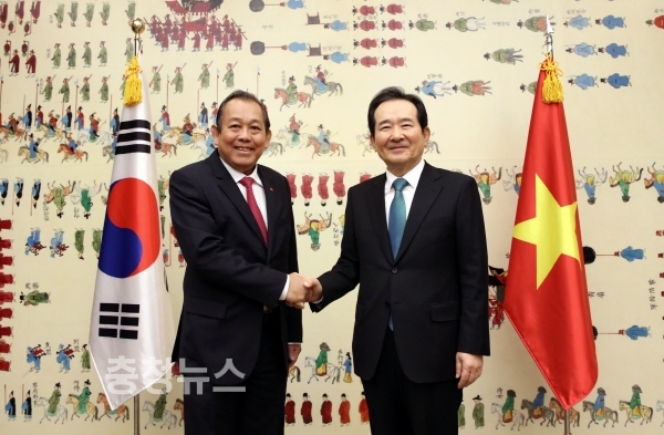 이에 쯔엉 화 빙(Truong Hoa Binh) 수석부총리는 공동이익과 평화발전을 위한 양국의 지난 25년간 성과를 강조한 뒤, 올해 4월 정 의장의 베트남 방문을 계기로 양국 의회간 상호협력 및 교류가 보다 강화되었다면서 "향후 베트남의 스마트도시 건설 및 인프라사업 등 경제, 교역, 투자 분야에서 한국 기업의 투자와 기술협력 확대를 희망한다”고 말했다.