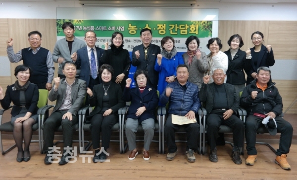 이날 농・소・정 간담회에는 최용빈 대전시청 농생명산업과 계장, 양보형 주무관, 정희정 국립농산물품질관리원 충남지원 계장, 구근우 농업기술센터 특화작물팀장, 박명숙 농협중앙회 지도경제단장, 송병희 소비자교육중앙회 대전지부 회장, 강난숙 대전충남소비자연맹 회장, 조광휘 YWCA 이사장과 김정민 회장, 안경자 소비자시민모임 대전지부 회장, 한덕희 한국부인회 대전지부 회장, 배현숙 한국소비자교육원 대전지부 회장, 백태현 유성배 농장 대표, 이신용 베리팜 블루베리 농장 대표, 전일영 우렁이 쌀 대표, 고대길 오이 생산 대표, 송현기 복숭아 연구회 회장과 황성운 반장, 송영란 동대전친환경포도작목반장, 충청뉴스 최형순 취재본부장이 참석했다.