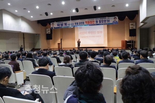 더불어민주당 대전 중구지역위원회(위원장 송행수)가 지난 22일 문화동 기독교연합봉사회관에서 ‘촛불 강연회 적폐청산 왜 필요한가’란 주제로 박범계 적폐청산위원장 특강을 실시했다.