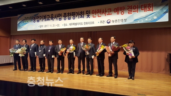 충남 아산시 농업기술센터(소장 남상필)가 지난 21일 농촌진흥청 주관으로 제주도 한화리조트에서 열린 ‘2017년 농촌진흥기관 농업기계 교육사업 종합평가회’에서 우수기관 표창을 수상했다.