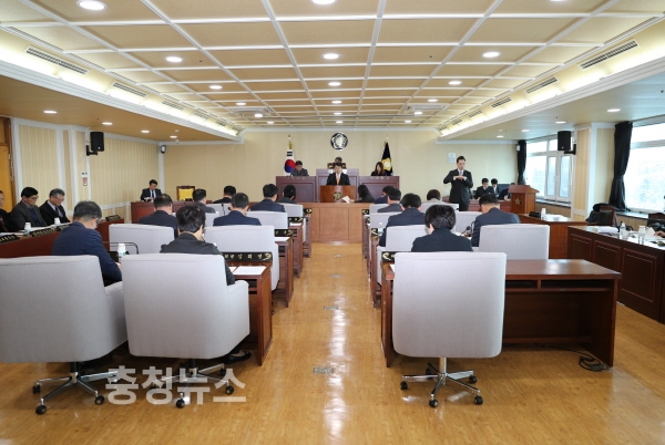 시정연설 중인 복기왕 아산시장