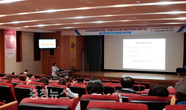 충남대학교병원(원장 송민호)은 23일 노인보건의료센터 5층 대강당에서“Total care from fetus to adult heart (태아부터 성인 심장질환 까지 전체적 관리)”를 주제로 제2회 고위험 산모·신생아 통합치료센터 심포지엄을 개최했다.