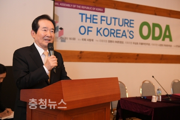 정세균 국회의장은 29일 국회 사랑재에서 '대한민국 ODA가 나아갈 길' 이라는 주제로 열린 세미나에 참석해 축사를 했다.