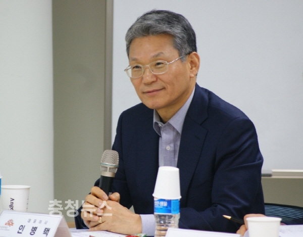 언론사 질문에 답하는 인병택 대표 / 충청뉴스 최형순 기지