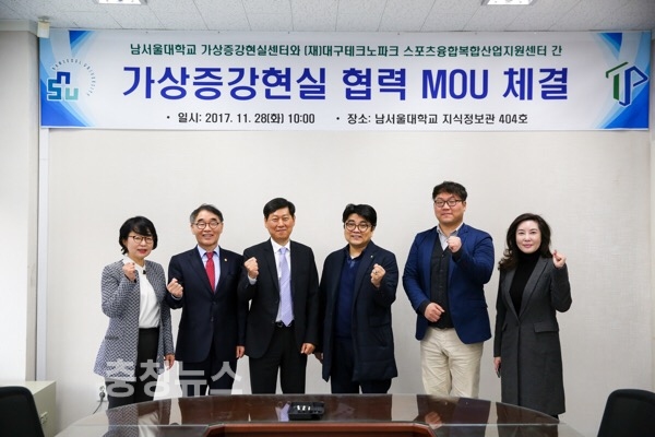 특히 남서울대학교가 특성화하고 있는 가상증강현실 분야의 개발기술과 인프라 교류, 산학연이 공동으로 참여하는 연구 프로젝트 추진, 가상증강현실 콘텐츠의 공동 개발 및 확산을 위하여 양 기관이 주력하기로 했다.