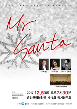 홍성군립합창단은 이번 정기연주회에서 대중에게 친숙한 노래뿐 아니라, <미스터 산타>라는 뮤지컬형식의 노래극도 준비하고 있다.