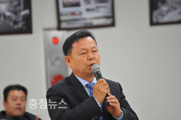 발언하는 유배근 국민의당 중구 위원장