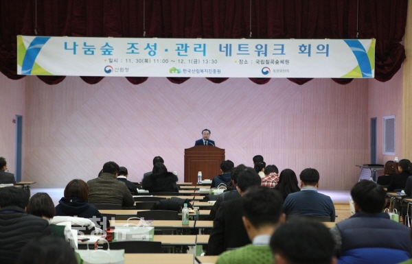 산림청 한국산림복지진흥원(원장 윤영균)은 1일 경북 칠곡군 석적읍 국립칠곡숲체원에서 나눔숲 조성·관리 관계자 회의를 했다고 밝혔다.