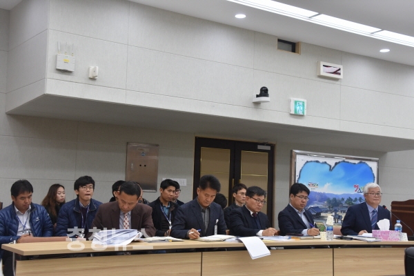 1일 오전 시청 회의실에서 열린 희망마을건설과 행정사무감사에서 박승용 의원(자유한국당, 나 선거구)은 조삼구 과장을 향해 2017년 지방하천유지관리 평가에서 논산시가 최우수를 받은 것에 대해 과장 이하 직원들을 칭찬했다.