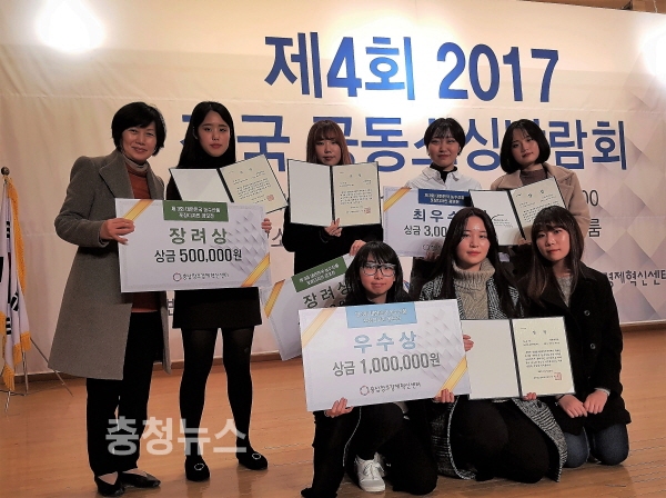 이 공모전에서 상명대학교 시각디자인 재학생 ▲김예림, 김은제, 이수연 학생팀이 작품명 ‘부여의 사계절’로 충남도지사상인 최우수상 ▲유연아, 이선영, 장유진 학생팀이 ‘서산 아로니아’로 충남창조경제혁신센터장상인 우수상 ▲김윤지, 정소라, 박진아 학생팀의 ‘밤뜨래’ ▲조은혜 학생의 ‘일대마을 안심고춧가루 패키지 디자인’의 작품으로 장려상을 수상하였다.