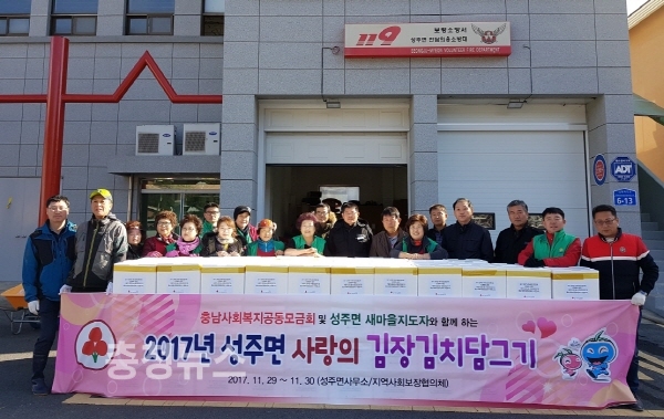 또 30일에는 성주면(면장 이재국) 직원 및 새마을단체는 지역사회보장협의체 민관협력사업 공모선정된 300만 원을 활용해 지역 기초생활수급자와 독거노인 등 64가구와 노인회관은 물론, 2012년 자매결연을 맺은 경기도 부천시 상2동 어려운 가정 20가구에 김치를 전달하며 결연의 정까지 나눴다.
